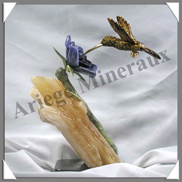 COLIBRI sur FLEUR (Corps en SODALITE) - 175 mm - A001 Pérou