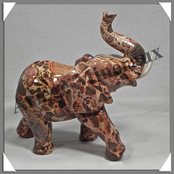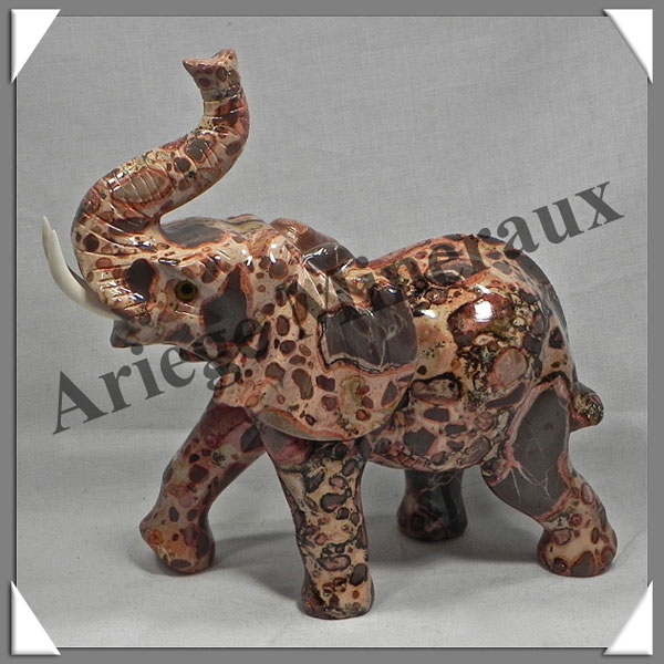 ELEPHANT - En LEOPARDITE (Jaspe Léopard) 155*150*70 mm - 990 grammes BELLE Pièce de Collection - Monobloc