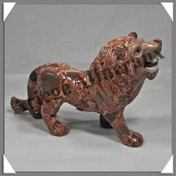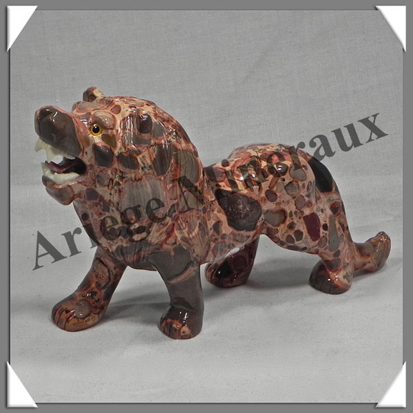 LION - En LEOPARDITE (Jaspe Léopard) 145*90*45 mm - 420 grammes BELLE Pièce de Collection - Monobloc