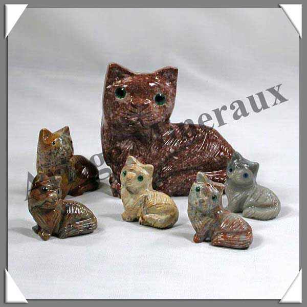 Famille CHAT PERSAN - En STEATITE Mère de 70 mm et 5 Petits de 30 mm