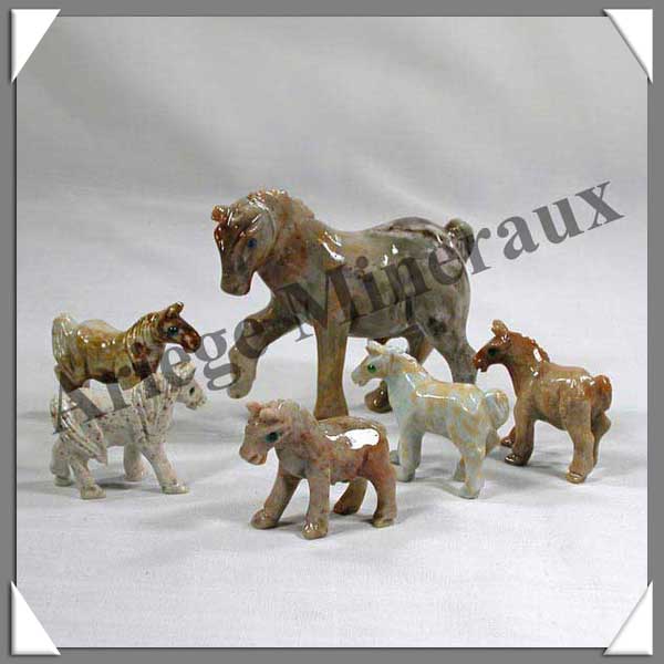 CHEVAL en MARCHE - STEATITE - Famille (Mère + 5 Petits) - A