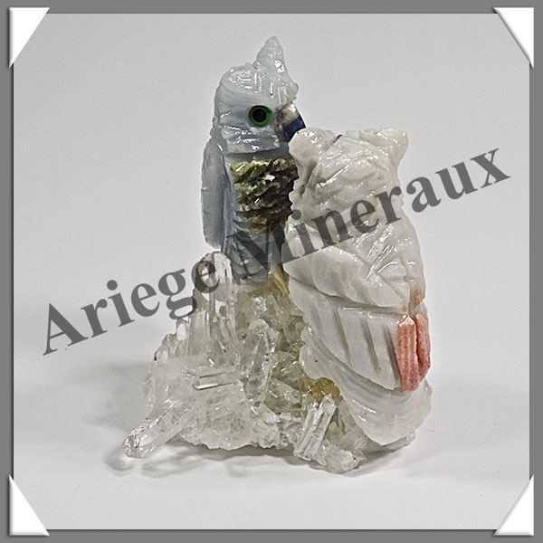 HIBOUX Couple - Socle QUARTZ - 50x45x25 mm - A015 Pérou