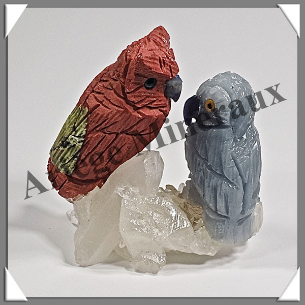 HIBOUX Couple - Socle QUARTZ - 50x45x25 mm - A015 Pérou