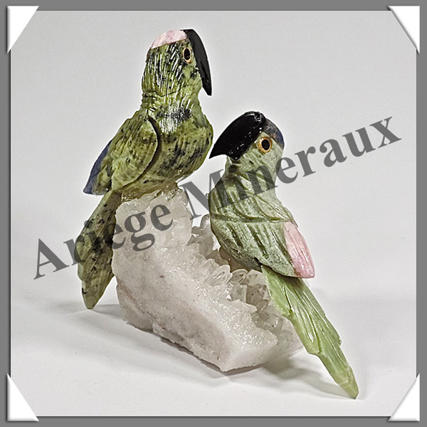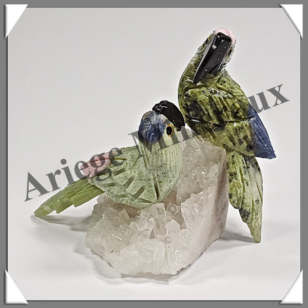 PERROQUETS Couple - Socle QUARTZ - 55x50x50mm - A004 Pérou