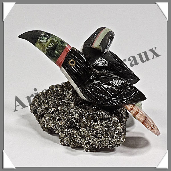 TOUCANS Couple - Socle PYRITE - 65x50x40 mm - A002